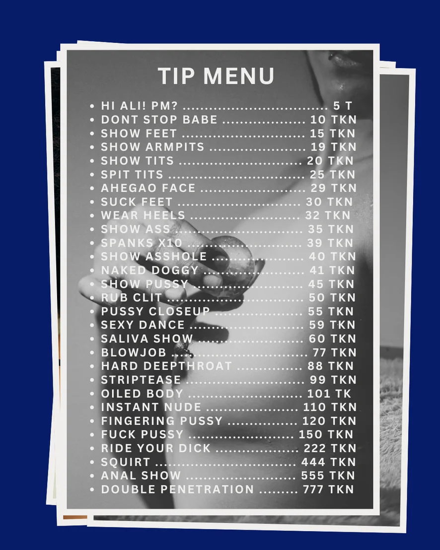 Doggy style, Ahegao, Spanking, Kameltå, Skittensnakk, Blotting, Rollespill, Massasje, Puppeknull, Nylon, Upskirt, Twerk, Cowgirl, Toppløs, Hæler, Oljeshow, Footjob, Onani, Blowjob, Sexleketøy, Onaneringsinstruksjon, Fotfetish, Stripping, Dildo eller vibrator, Fingring, Kukkvurdering, Erotisk dans, Sprut, Hardcore, Orgasme, Analleketøy, Deepthroat, Røyking, Dobbel penetrering, Anal